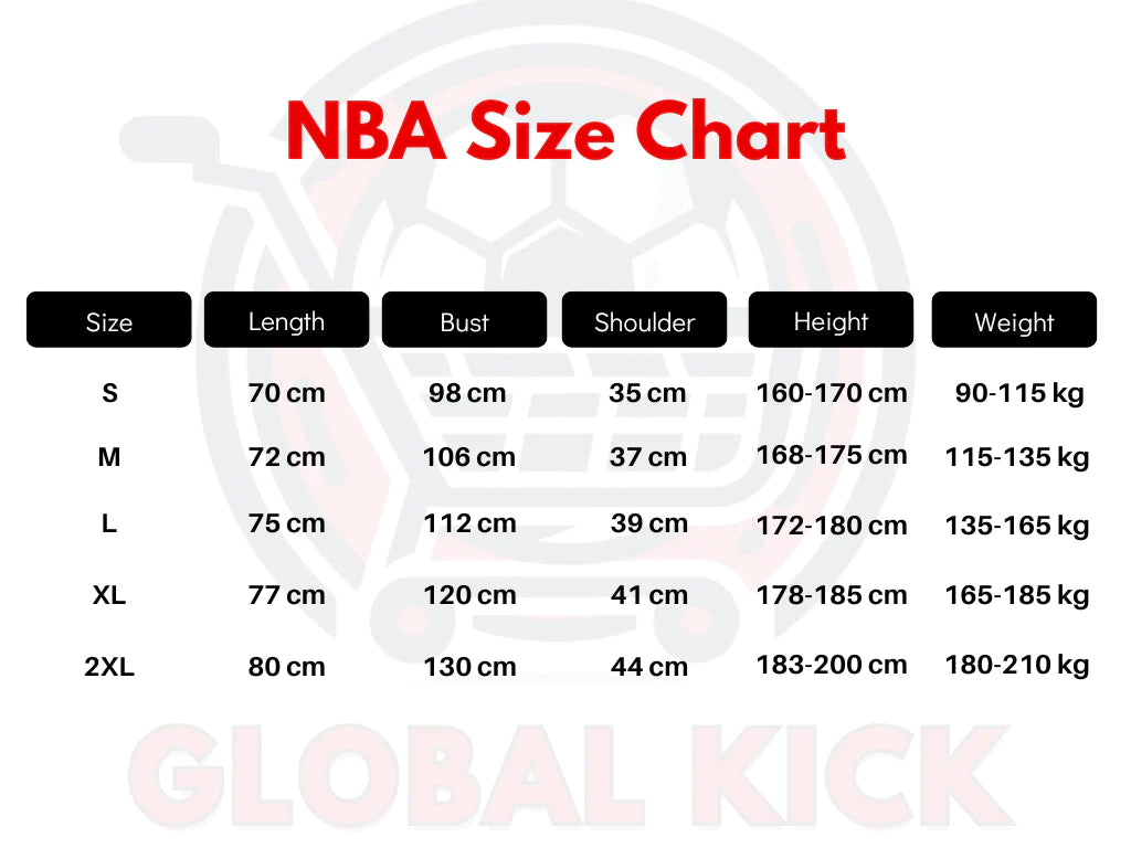 These measurements ensure a perfect fit for every fan. If you're unsure of your size, consider choosing one size larger for a more relaxed fit. These measurements are averages; when in doubt, we suggest opting for a larger size.